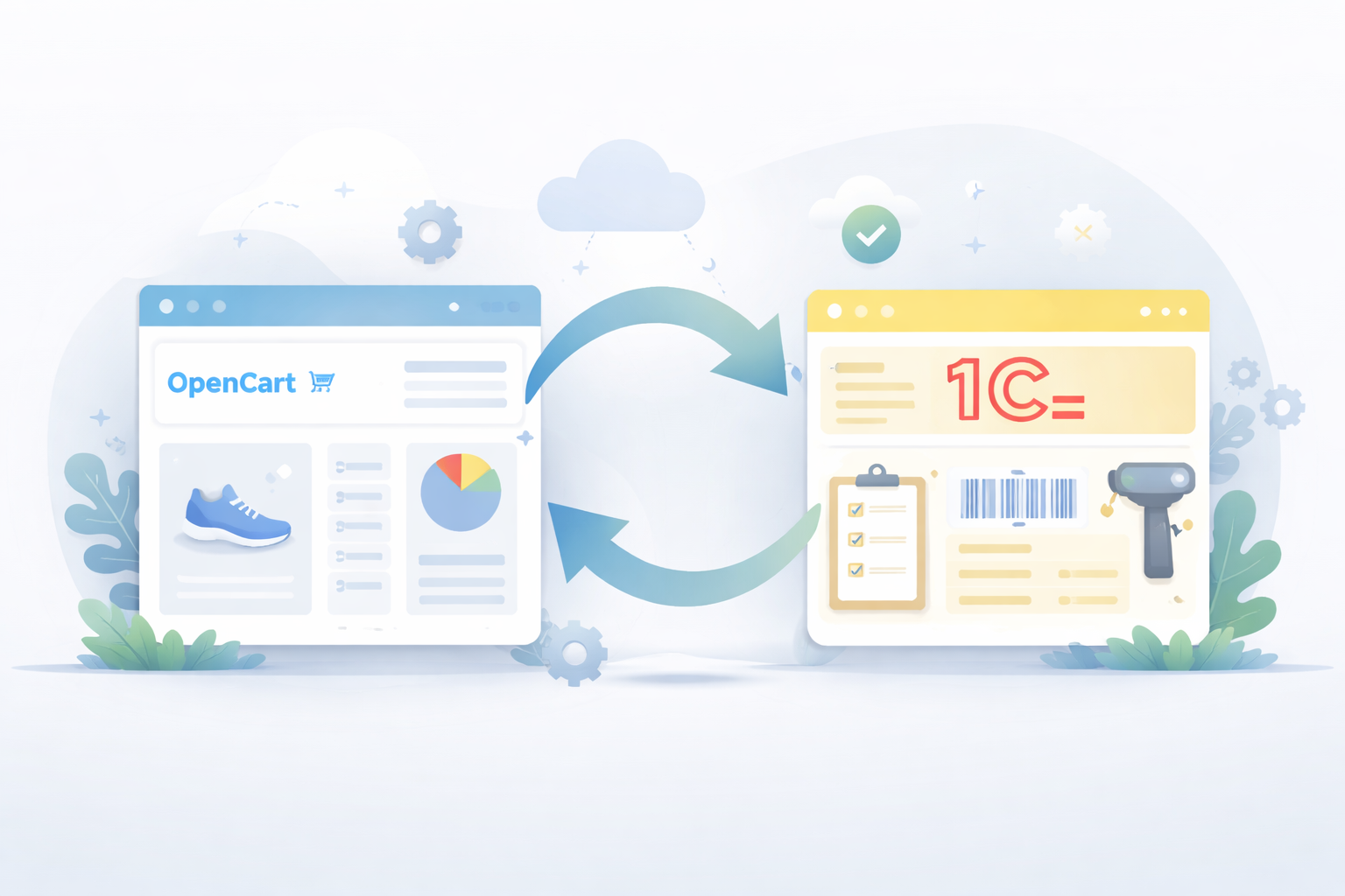 Интеграция OpenCart с 1С — это настройка автоматического обмена данными между интернет-магазином и системой учёта 1С.