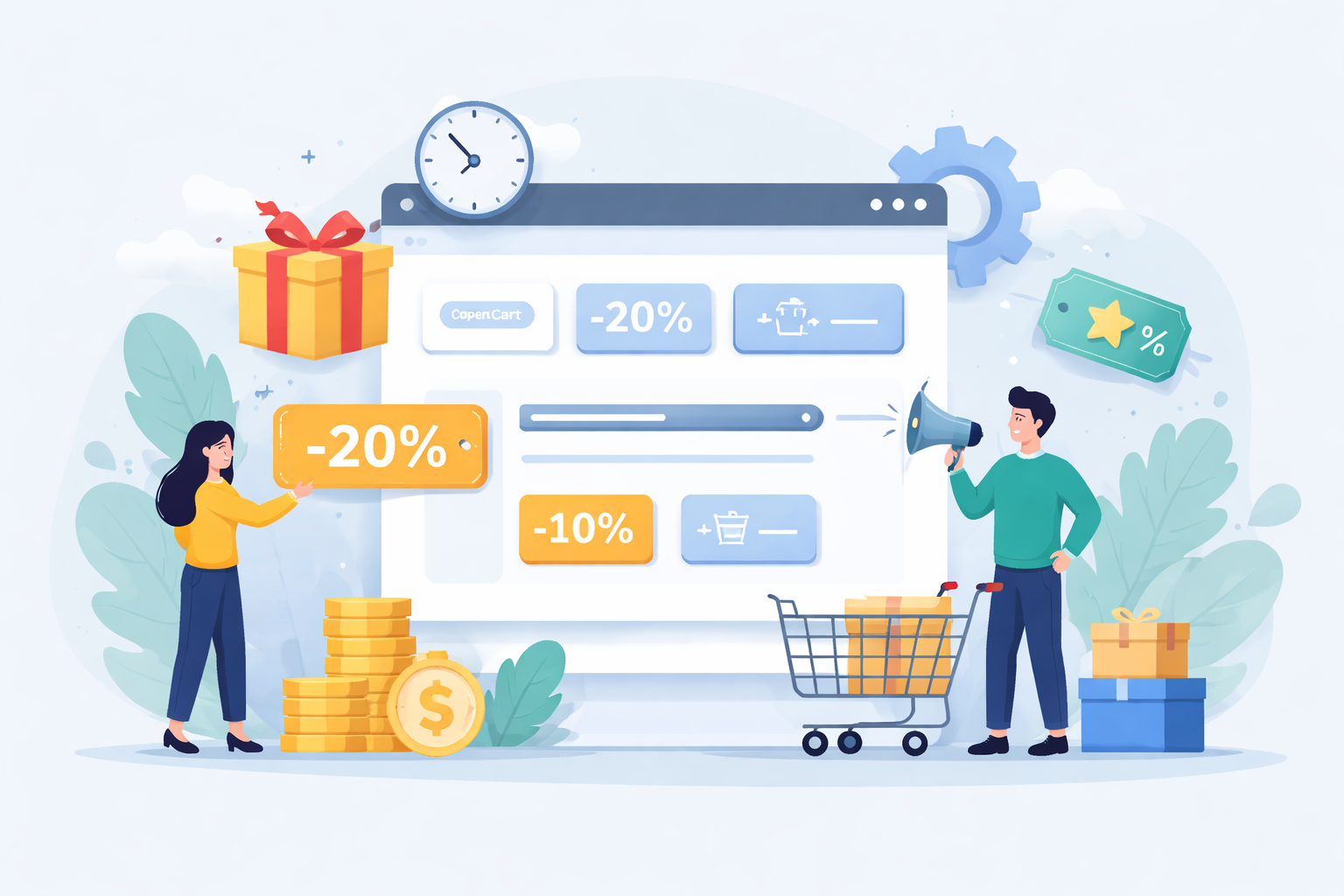 Профессиональная настройка акций, скидок и спецпредложений в OpenCart позволяет эффективно управлять продажами и маркетинговыми кампаниями.